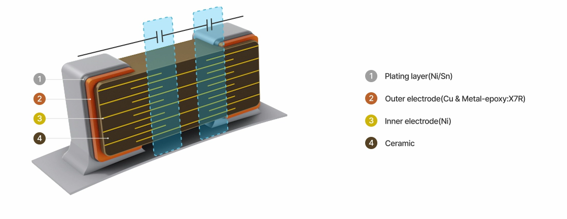 Designed to prevent circuit malfunction even if the MLCC product is cracked and a short circuit occurs inside.